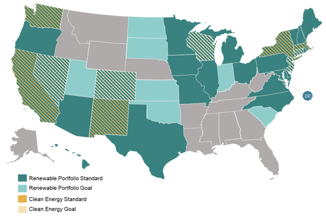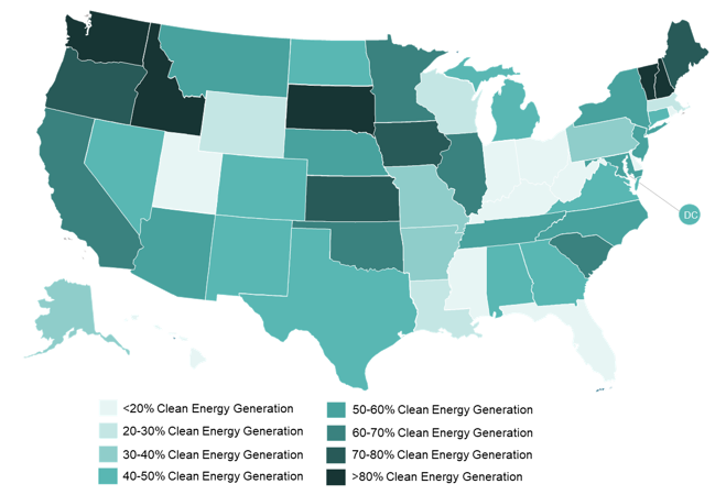 Current Clean Energy Generation by State (Data Source: U.S. Energy Information Administration)