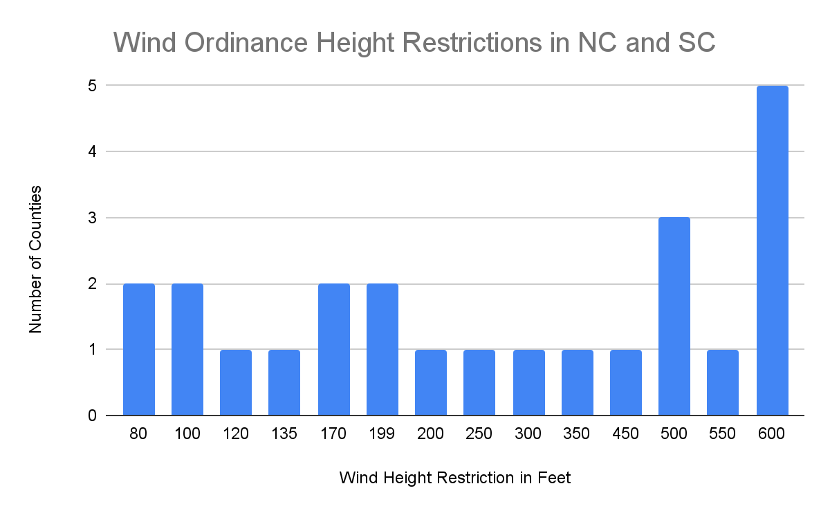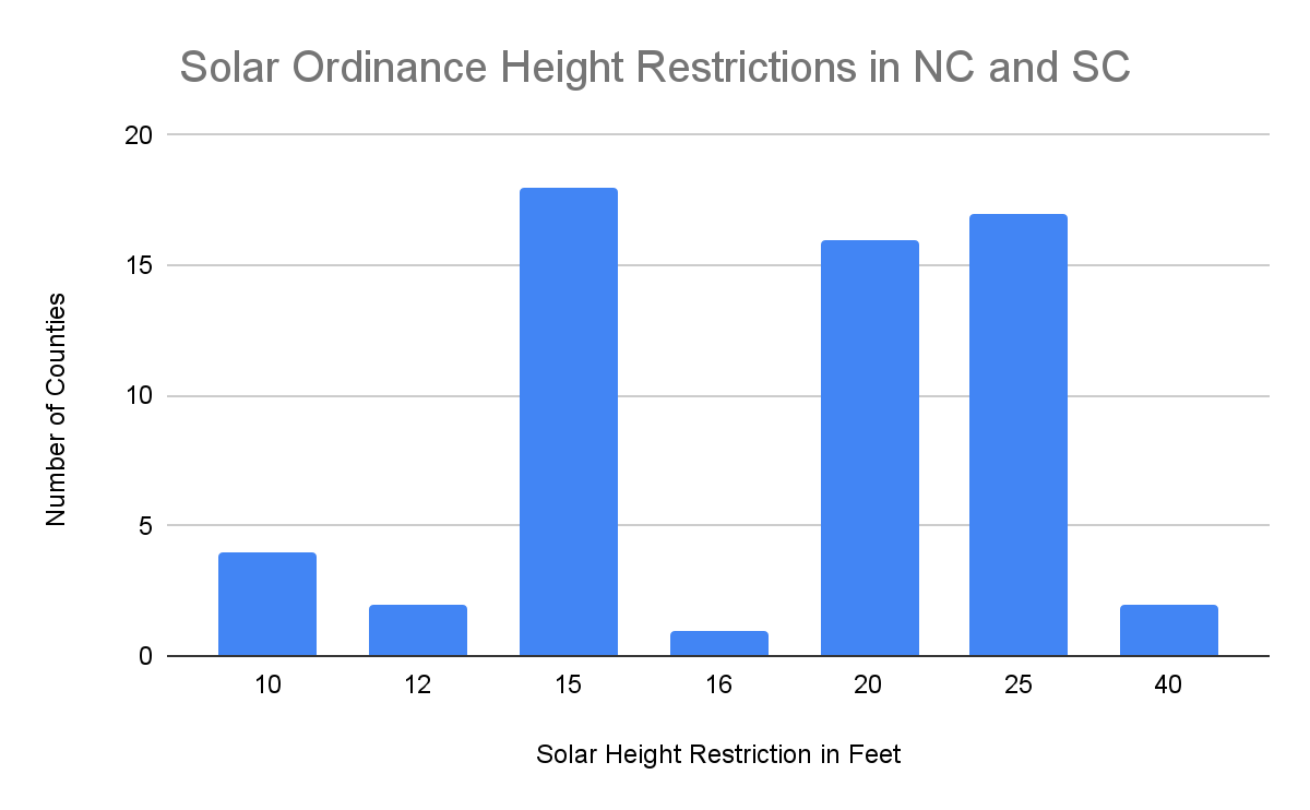 Five ordinances across the Carolinas specified a minimum distance from bodies of water and wetlands for solar facilities. This may reflect concerns about water contamination (or runoff from pesticides).